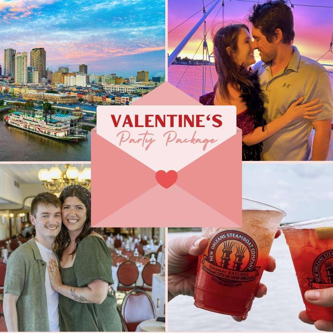 The Steamboat Natchez Valentine's Party Package will be available from February 13th through February 15th. This package includes your two-hour cruise, a Creole lunch sampler or Creole dinner or brunch buffet, a decorated reserved table, three alcoholic beverages from their specialty cocktail menu (unlimited soft drinks and juice for children), and a sweet treat. Learn more and book. ps://www.steamboatnatchez.com/cruises-2/holiday-cruise/valentine-s-day-package.html