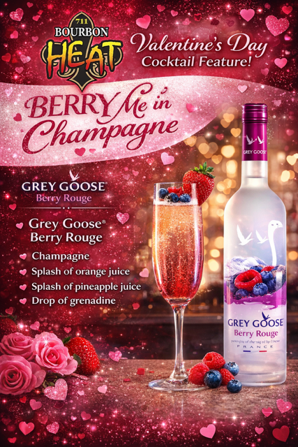 Have yourselves a berry little Valentine’s Day at Bourbon Heat this year. Their Berry Me in Champagne cocktail is both romantic and delicious.